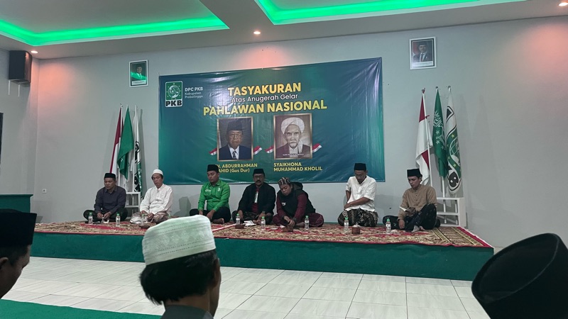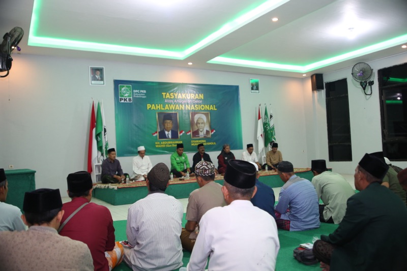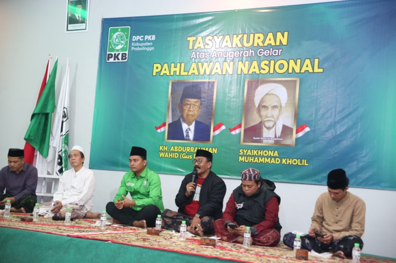 PROBOLINGGO Dewan Pimpinan Cabang Partai Kebangkitan Bangsa (DPC PKB) Kabupaten Probolinggo menggelar acara tasyakuran atas penganugerahan gelar Pahlawan Nasional kepada dua tokoh besar Nahdlatul Ulama, KH. Abdurrahman Wahid (Gus Dur) dan Syekhona Muhammad Kholil Bangkalan. Kegiatan yang berlangsung khidmat dan penuh kehangatan ini digelar di Graha Kebangkitan Pajurangan, Kecamatan Gending, Selasa malam (11/11/2025).