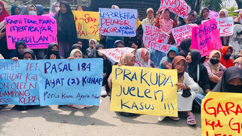 “Kami ini capek menunggu. Setiap minggu saya datang, tapi tidak pernah ada jawaban yang jelas,” ujarnya lirih di sela aksi, sambil menahan tangis.