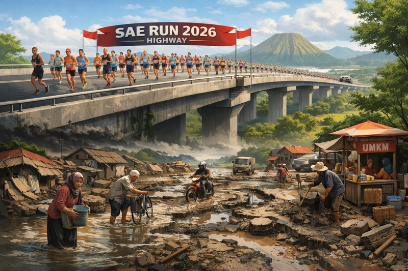 SAE Run Highway 2026 telah usai digelar. Ribuan peserta berlari di atas ruas jalan tol yang mulus, steril, dan megah sebuah infrastruktur yang kerap diposisikan sebagai simbol kemajuan. Namun, ketika gema langkah kaki para pelari mereda, yang tertinggal justru pertanyaan publik yang belum terjawab kemajuan untuk siapa, dan dengan mengorbankan apa?