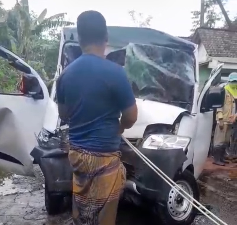 Peristiwa terjadi di ruas jalan desa setempat. Berdasarkan rekaman video yang beredar di masyarakat, kendaraan mengalami kerusakan cukup parah di bagian kabin. Sopir sempat terjepit di dalam kendaraan dan dievakuasi secara gotong royong oleh warga sekitar dengan bantuan kendaraan lain yang menarik mobil menggunakan tali.