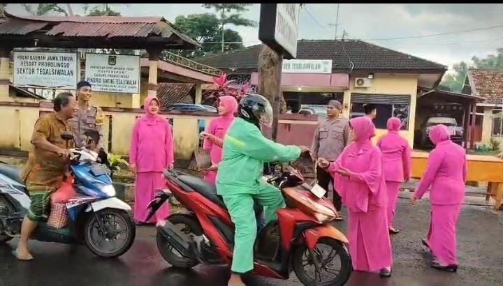 TEGALSIWALAN Jajaran Kepolisian Sektor (Polsek) Tegalsiwalan, Kabupaten Probolinggo, menggelar kegiatan sosial berupa pembagian takjil kepada para pengguna jalan yang melintas di depan Mapolsek Tegalsiwalan pada Rabu (12/3/2026). Kegiatan tersebut merupakan bagian dari upaya kepolisian untuk menumbuhkan kepedulian sosial sekaligus mempererat hubungan antara aparat kepolisian dengan masyarakat di momentum bulan suci Ramadan.